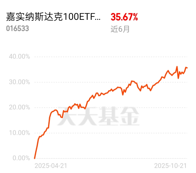 美股市场延续震荡趋势,三大指数均回调,纳斯达克100指数昨晚回调1个点。尽管大盘震荡,苹果、微软等权重股仍保持强势,纳斯达克100指数在AI浪潮驱动下,长期成长逻辑稳固。我关注的$嘉实纳斯达克100ETF发起联接(QDII)C人民币$ 单日限购5000元,在当前市场额度最大了,近一个月涨幅1.3%近三个月涨幅6.6%近六个月涨幅35.67%表现还不错,利用5000日限额分批定投不失一种好方式。