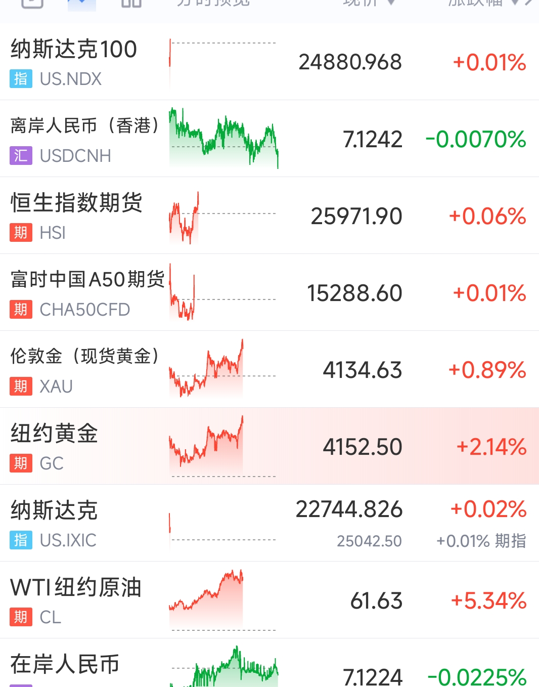 夜盘美股目前小涨小跌的趋势!期中纳斯达克100涨0.01%,期待睡一觉起来期待又