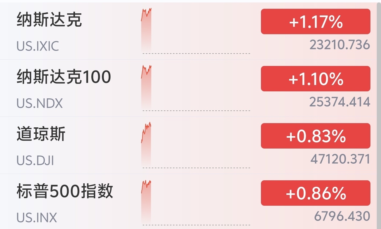 强大无需多言呀,小伙伴们,今天晚上美股行情又突破新高了。到目前为止,纳斯达克上涨了1.17%,纳斯达克100指数上涨了1.1%,目前也迎来了配置窗口期,投资性价比高。