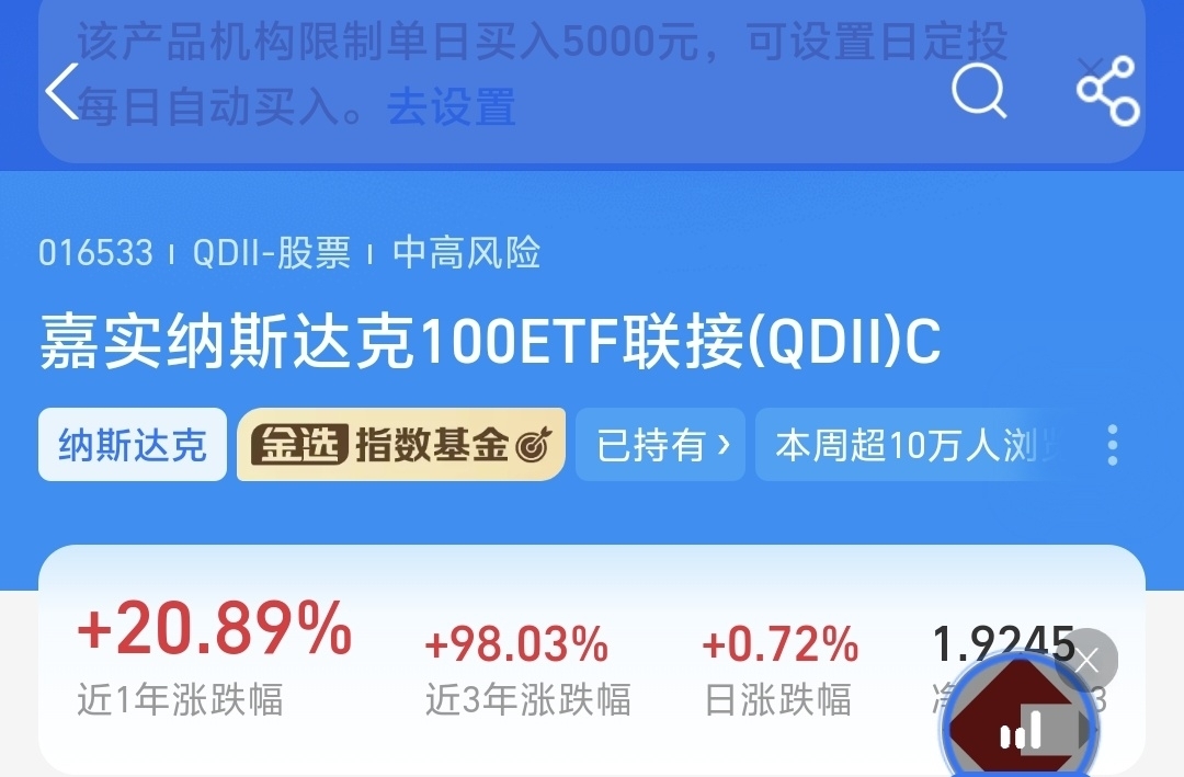 更关键的现在限额5000元,在同类中额度高,而且嘉实基金在QDII领域经验丰富,基金经理张静深耕海外市场多年,指数跟踪精准度高,不用操心择时和选股,跟着指数走就很省心。