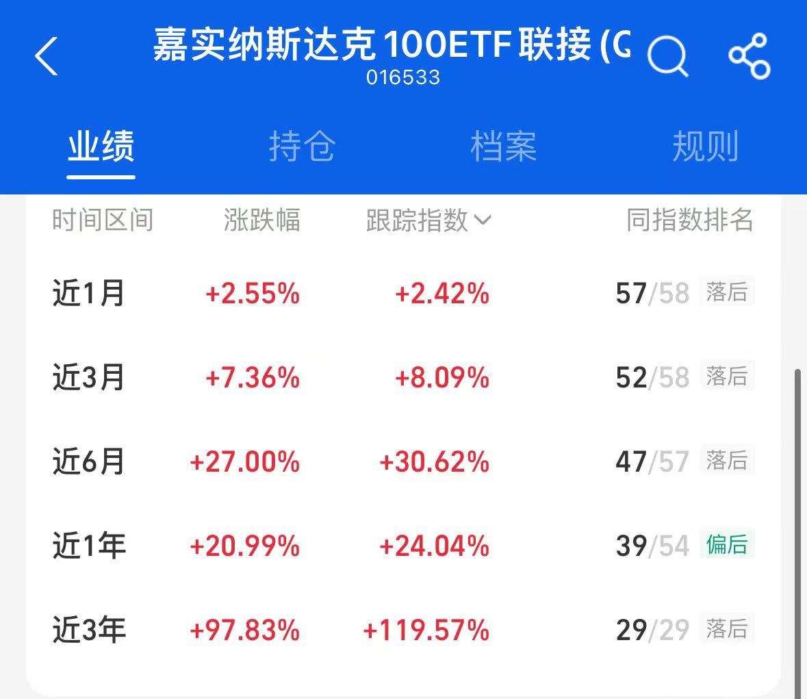 家人们,最近真的挖到宝了!你们知道那个$嘉实纳斯达克100ETF发起联接(QDII)C人民币$ 吗?QDII那个,投海外科技股的,居然每天只用5000额度就能上车,简直不要太友好!完全不像其他基金动不动就限购几万,压力直接拉满。我看了下它近半年的收益,好家伙,20.99%!我当时就一个反应:这也太猛了吧?!
