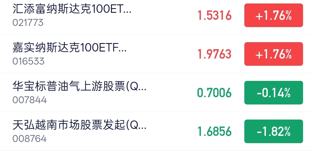$嘉实纳斯达克100ETF联接(QDII)C$ 估值上涨了1.76%,最近表现还是非常不错的,这段时间涨幅也很给力,还是非常看好你的,不过纳斯达克目前都限购了,我觉得也是对我们的一种负责,难怪好多宝子最近一直在定投呢