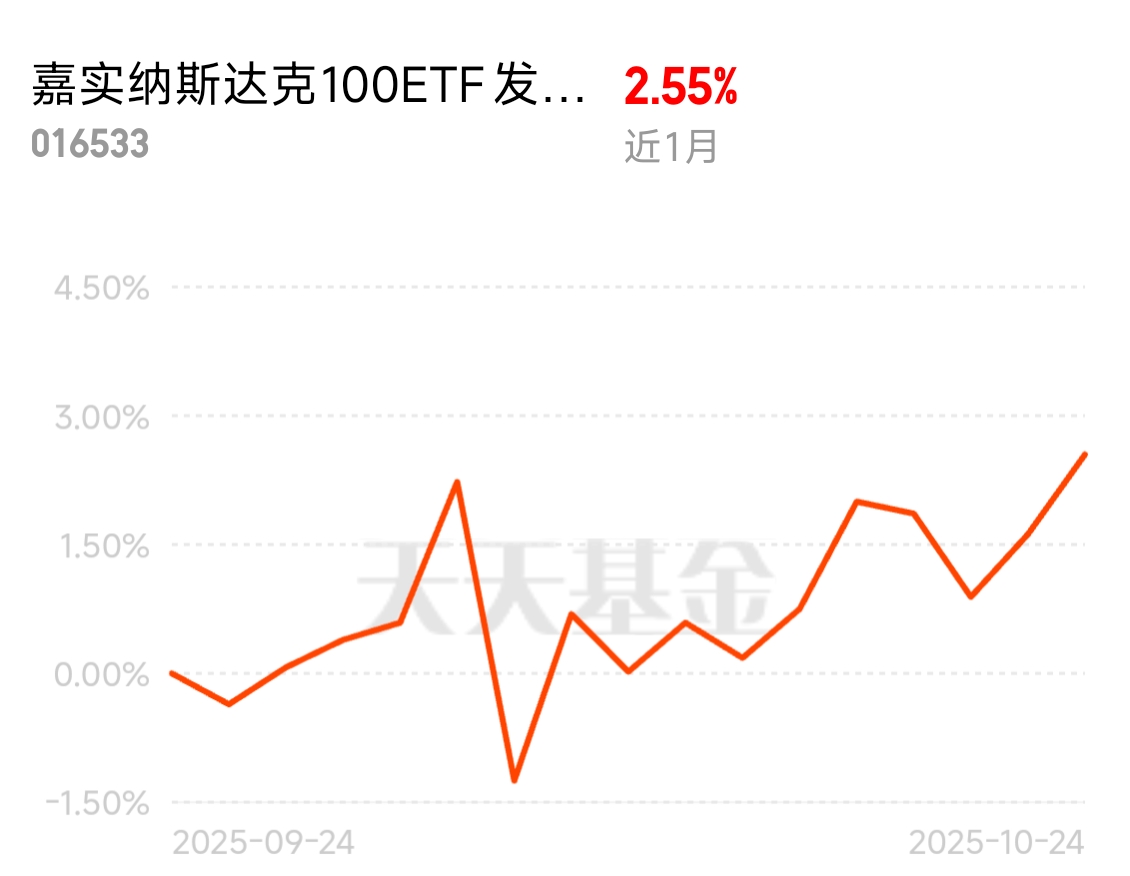 虽然说今天的市场有点调整,但我一点都不慌,因为我有我的$嘉实纳斯达克100ETF发起联接(QDII)C人民币$ 这基太适合我了!单日最多投5000,想少投点试试水,或者每月固定加一点都能行,灵活度拉满。之前对比过,它这阶段性收益比我自己瞎买海外个股稳多了——毕竟咱对国外市场不熟,直接买股票容易踩坑,但投指数就省心多了。