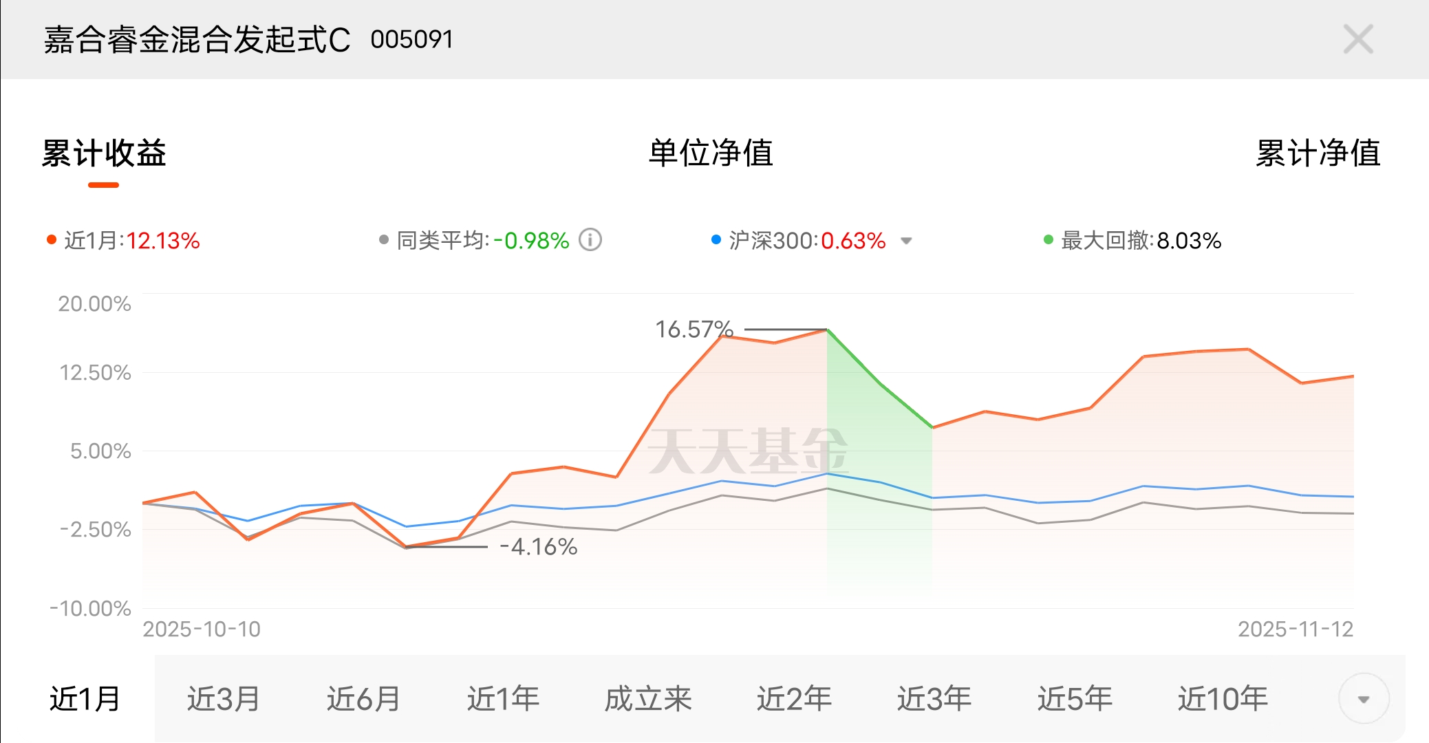 现在科技股的涨势根本挡不住,CPO作为AI的高速网线,存储芯片作为电子硬盘,需求只会越来越大。嘉合睿金混合C重仓这两个方向,近一个月收益12.13%,投资就是要选这种刚需赛道。