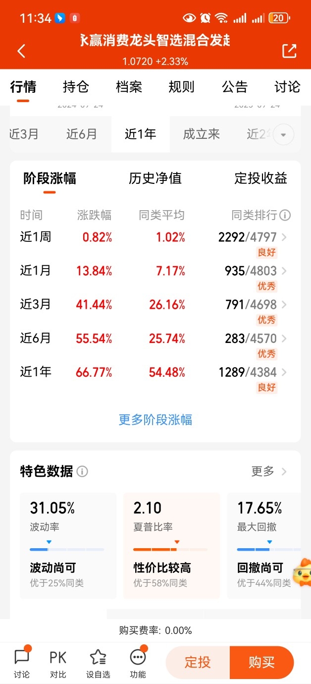 $永赢消费龙头智选混合发起C$最近涨势还不错呢,昨天上涨+2.33%,已经连续四