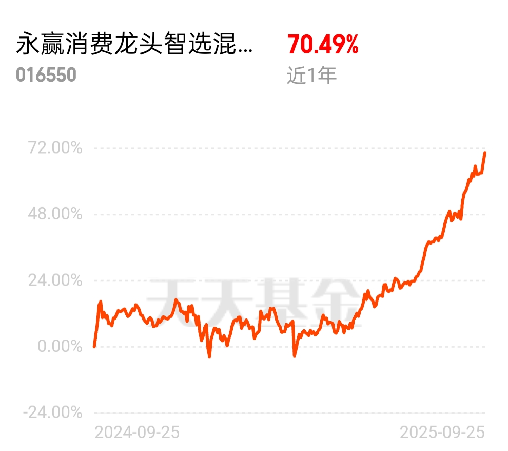 还有几天,就是双节了,这个时候我感觉投资消费赚钱概率更大,$永赢消费龙头智选混合发起C$ 聚集,AI传媒,电子等消费细分领域, 昨天涨2.12%,连涨五天,看历史业绩,近一个月涨15.27%,近三个月涨43.79%,近一年涨70.49%,感觉还不错,准备顺势上车。$永赢消费龙头智选混合发起C$#9月你看好哪条投资主线?#