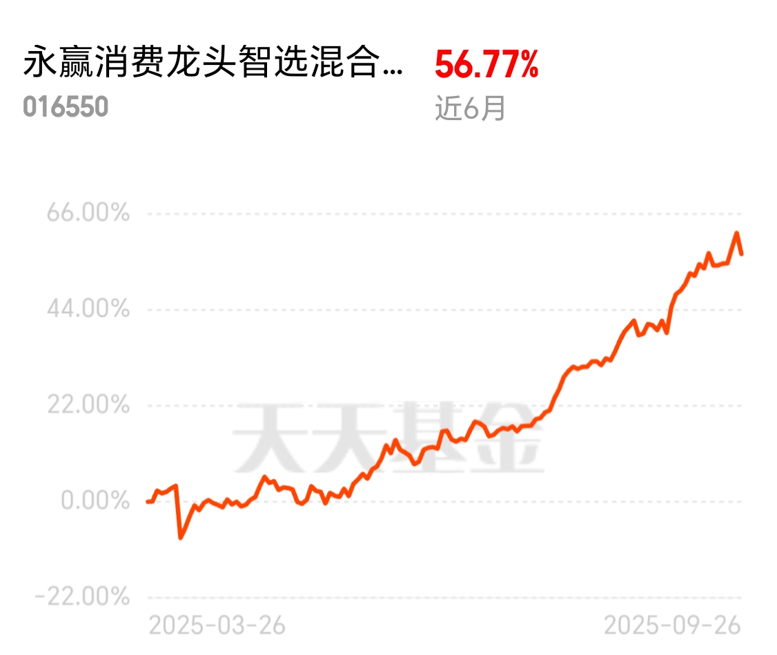 $永赢消费龙头智选混合发起C$ 重点布局医药生物(30.17%)、軽工制造(25.77%)等新当消费领域,契合产业升级趋势。近一个月涨10.75%,近半年涨56.77%,目前看,走势良好,我准备买点试试。$永赢消费龙头智选混合发起C$