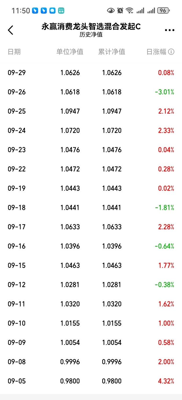 发现$永赢消费龙头智选混合发起C$弹性十足哇,9月以来除了7天是回调状态,其余全