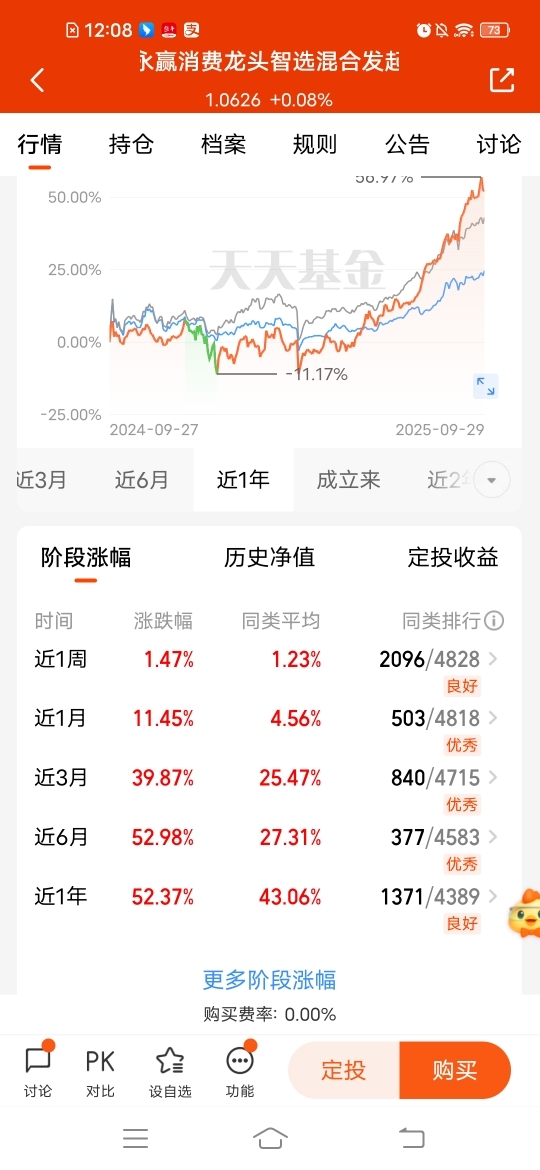 $永赢消费龙头智选混合发起C$ 聚焦AI教育与传媒。现在低估值,投资性价比高。昨天涨幅0.08%,近一个月涨幅11.45%,近半年涨幅52.98%,近一年涨幅52.37%,弹性十足的,AI科技发展,教育和传媒受益不错。将助力传媒行业重铸辉煌,传媒行业加速发展,政策利好共振下,布局高景气高成长赛道,值得期待。#长假来临 持基过节还是持币过节?#