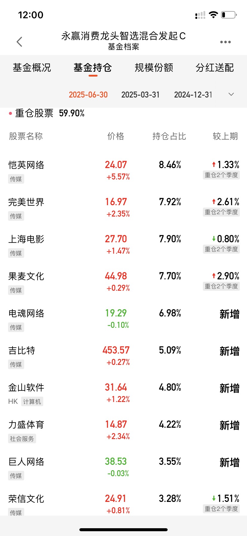 $永赢消费龙头智选混合发起C$ 聚焦传媒与新兴消费领域,看好游戏板块投资价值,行业集中度高,当前消费板块逐渐进入右侧复苏阶段,今年来传媒板块的基本面表现还是亮眼的,游戏板块也正处于持续上行的周期,这里近三个月17.37%涨幅,近半年38.19%涨幅,业绩表现还是稳健向上的咯!#10月基金投资策略#
