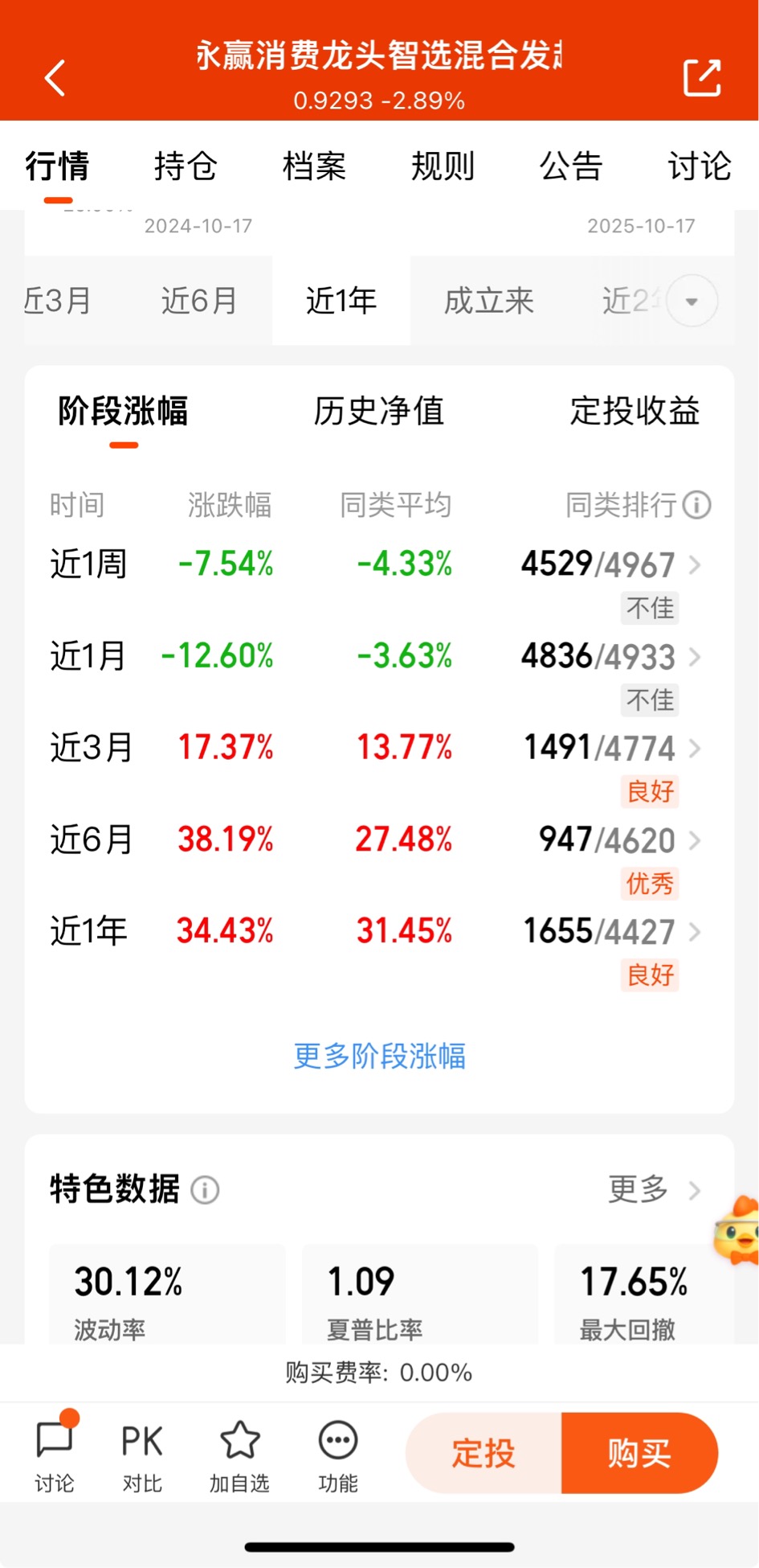 $永赢消费龙头智选混合发起C$今天有一起加仓吗?近3个月收17.37%,近6个收