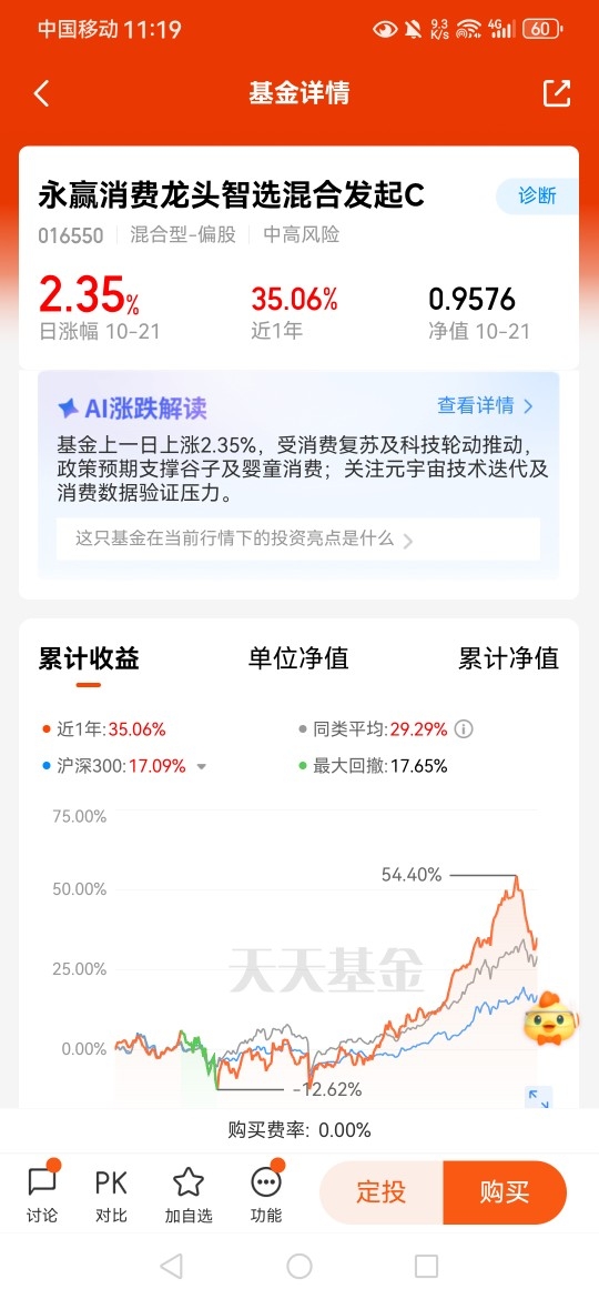 $永赢消费龙头智选混合发起C$近期业绩表现亮眼。近一年涨幅去到35.06%;从长