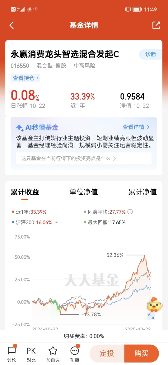 $永赢消费龙头智选混合发起C$ 专注消费龙头赛道,聚焦游戏产业优质标的,昨天小涨0.08%,近三个月涨21.84%,近六个月42.36%的涨幅,中长期业绩表现亮眼。永赢消费龙头凭借优异业绩与精准赛道选择,成为投资者把握游戏风口、分享产业增长红利的理想选择。我冲了,有一起了嘛?#深地经济成新风口!产业链如何投资 ?#