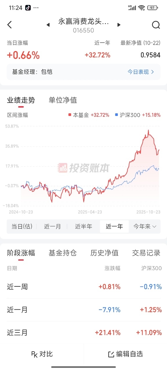 消费本周连涨3天,今天又继续上涨,永赢消费龙头智选混合发起C016550今天估值上涨0.66%,近三个月净值大涨21.84%,近六个月上涨42.36%,这只主投传媒+应用,持仓有A股+港股,前景是非常不错的,分批布局起来,费率低,性价比高!