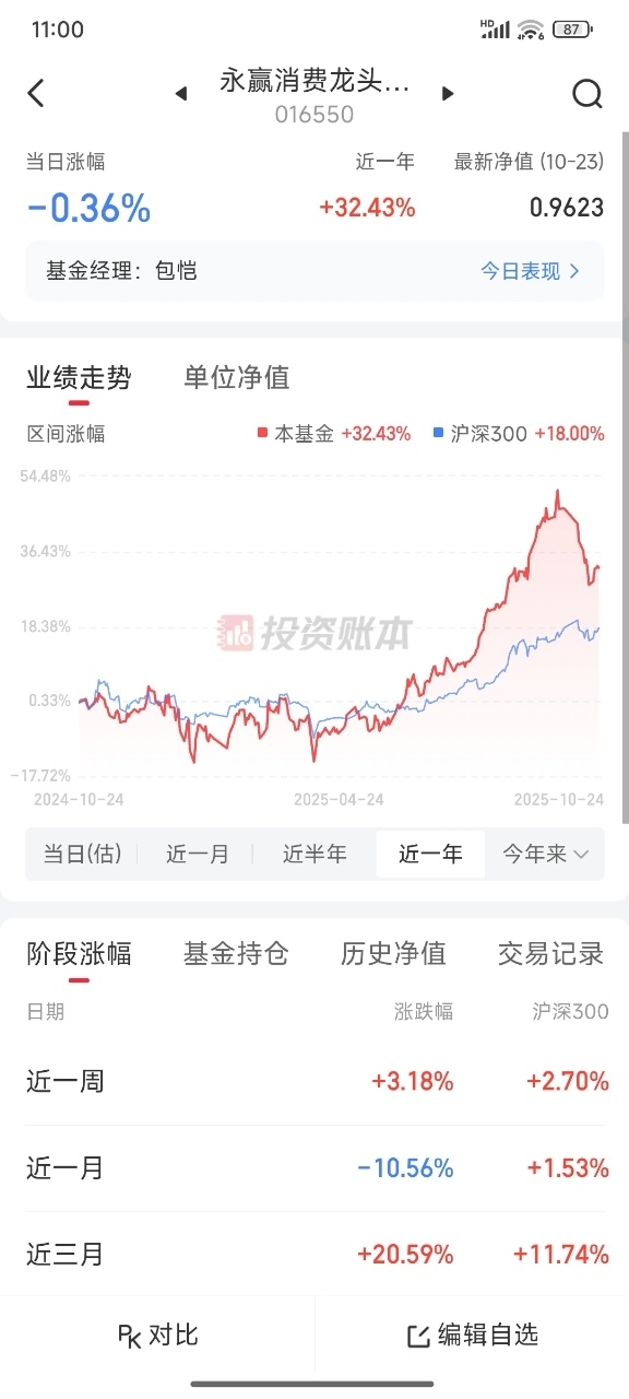 眼下不确定因素仍在,我还是在消费这里继续避险比较好,本金安全必须放第一位,看好永赢消费龙头智选混合C016550昨天净值涨0.41%,近六个月收益率42.06%,这只主投传媒+应用及游戏,性价比高,希望未来有个好收益。