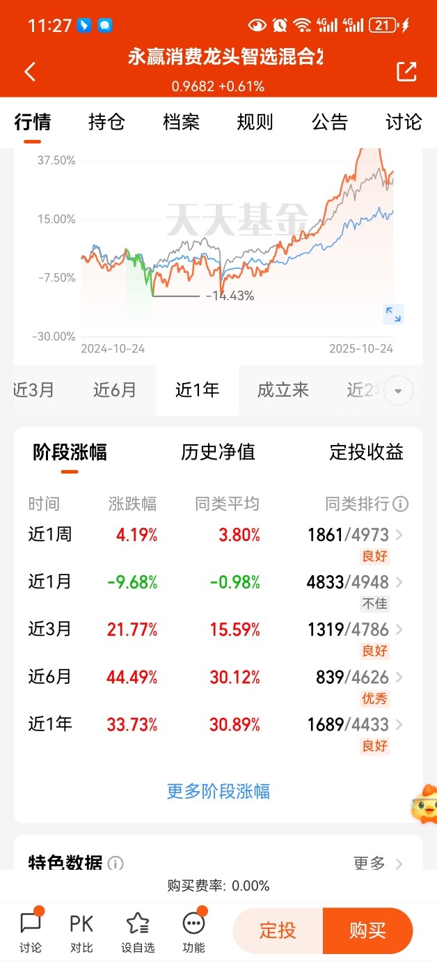 $永赢消费龙头智选混合发起C$ 最近还挺给力,已经连续五天上涨,回暖趋势明显。我们再看看其它阶段业绩,近一周涨幅+4.19%,近三个月涨幅+21.77%,近六个月涨幅+44.49%,作为一只专注于AI传媒融合的主题基金,弹性还不错。无论是从短期收益弹性还是长期成长空间来看,该基金都展现出了独特的投资价值。#美方“不再考虑”对中国加征100%的关税#