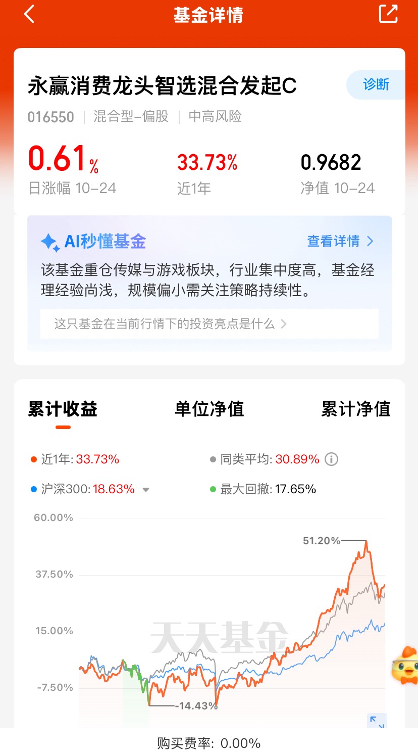 #小金属概念狂飙!行情逻辑是什么?# $永赢消费龙头智选混合发起C$ 上一个交易日上涨0.61%,近3月上涨21.77%,近6月上涨44.49%。该基金聚焦AI传媒领域,重仓游戏、影视、图书等板块,受益于AI技术对传媒行业的推动,业绩增长显著。其优势在于精准定位AI传媒赛道,基金经理包恺任职以来表现突出,且持仓集中于行业龙头,能有效捕捉板块红利。随着AI在传媒领域的应用深化,以及5G技术的普及,该基金有望继续受益于行业增长。