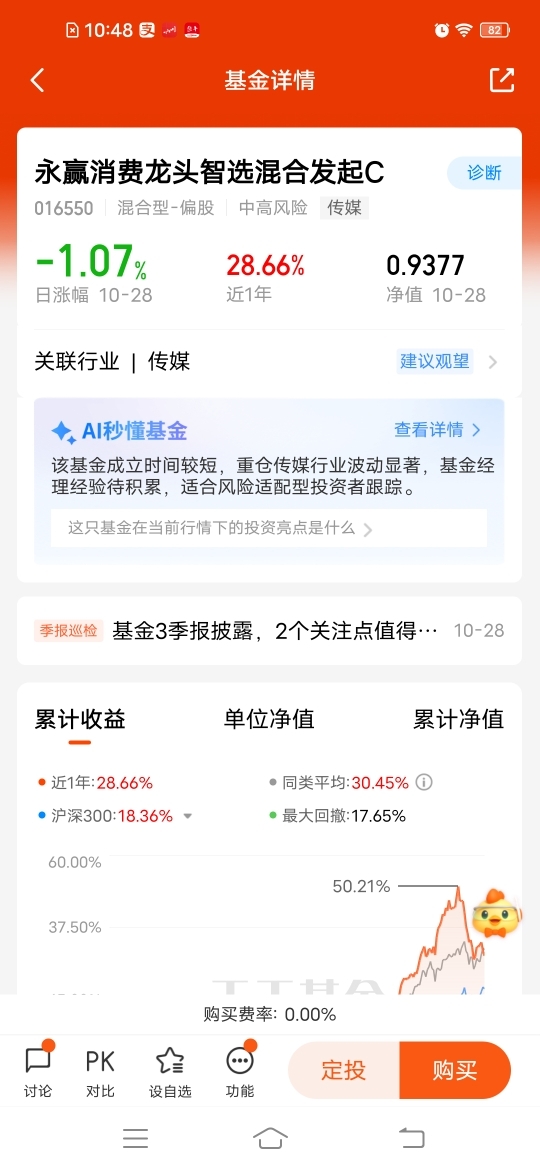 $永赢消费龙头智选混合发起C$今天不错,反弹起来了,近三个月涨幅16.41%,近
