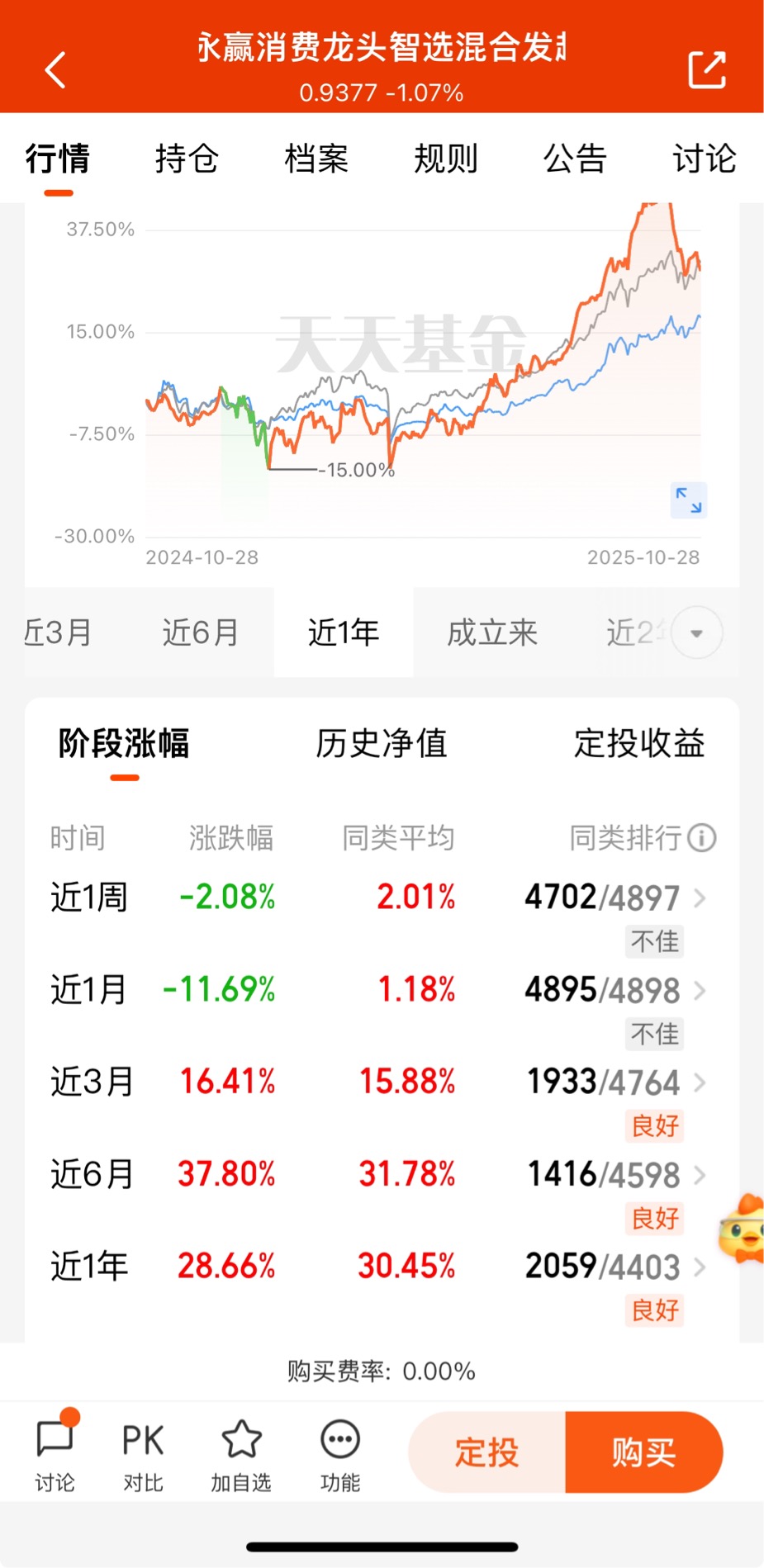 $永赢消费龙头智选混合发起C$今天跟着一起加仓起来了吗?近3个月收16.41%,