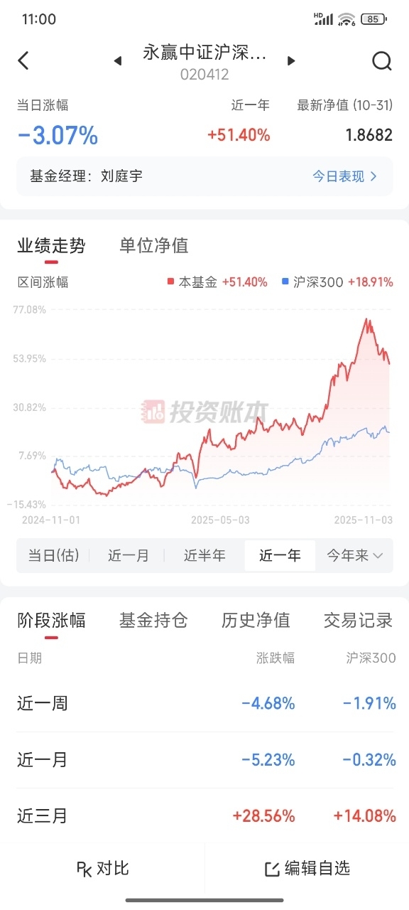 11月开门红,前期低迷的消费今天表现不错,看好永赢消费龙头智选混合发起C016550今天估值上涨0.54%,近六个月上涨32.67%,这只主投游戏,持仓有A股+港股,消费正在走出基本面低谷,估值回归也是很自然的事,继续看好这个方向。接下来分批定投!