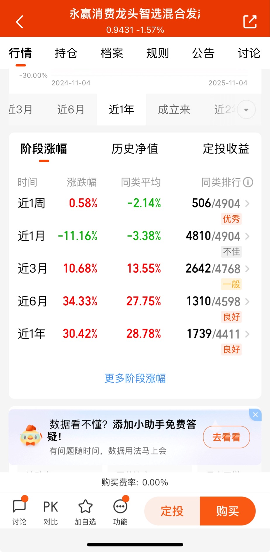 $永赢消费龙头智选混合发起C$趁调整的时候就加仓起来,近3个月收10.68%,近