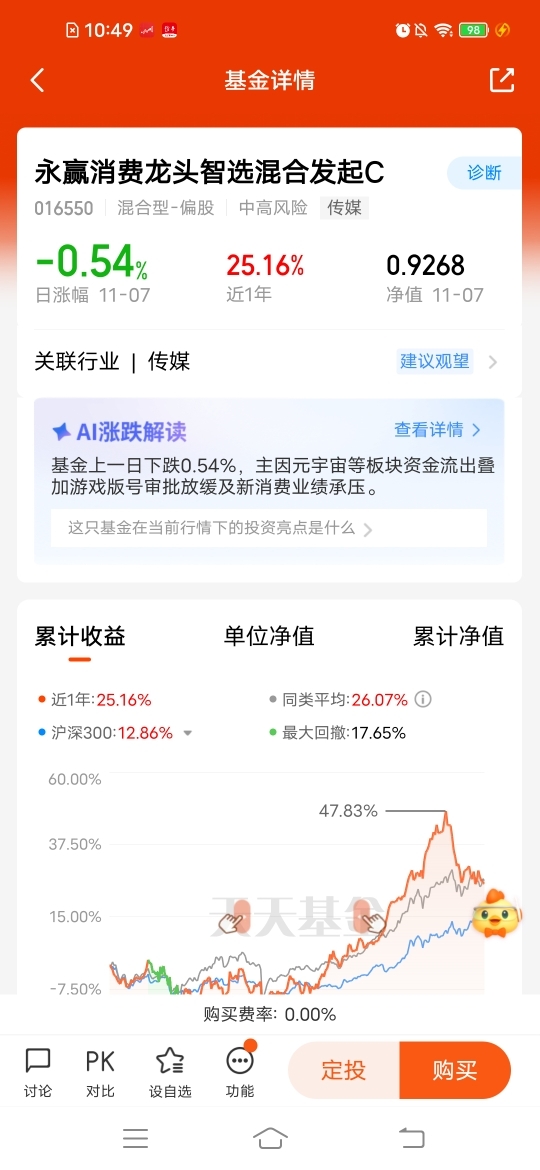$永赢消费龙头智选混合发起C$ 趁着市场调整后,布局更有动力,近六个月涨幅31.18%,近一年涨幅25.16%,行业估值处于历史低位。聚焦游戏方向,游戏板块投资的优质工具,凭借其主动选股策略所具备的灵活特性,基金经理通过精选高景气细分赛道,中长期更值得期待。#4000点 到底要不要止盈?#