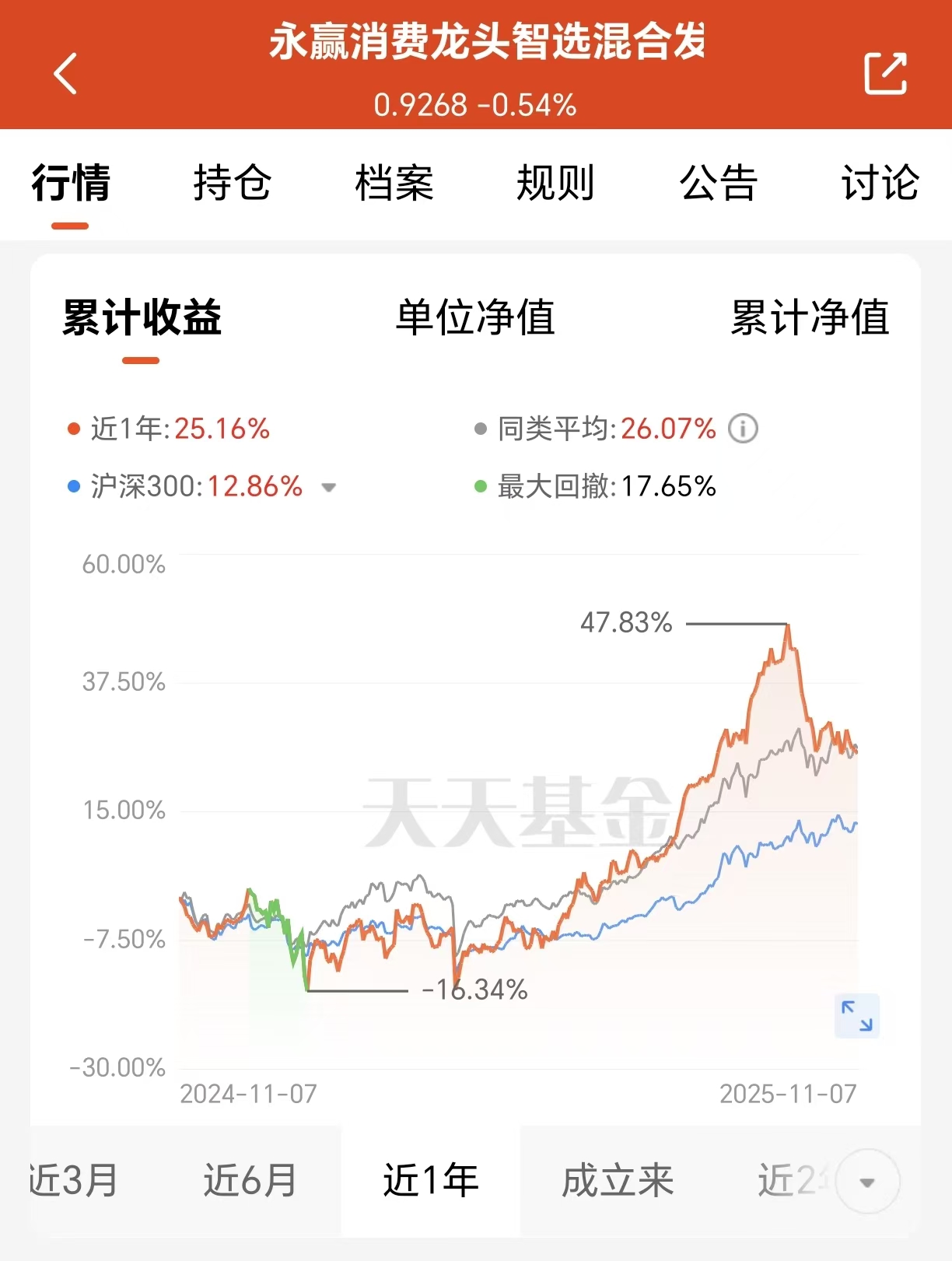 永赢消费龙头智选混合发起C(016550)虽定位为消费主题基金,却敏锐地捕捉到游戏这一新兴消费领域的投资机会。基金在2025年二季度重点配置了传媒方向,特别是游戏板块,成功把握了行业增长红利。该基金主动选股策略展现出了明显优势。根据最新披露,基金前十大重仓股中包含了多只游戏行业优质标的,如恺英网络、完美世界、吉比特等。这些公司大多产品储备丰富,研发实力突出,能够充分享受行业政策红利。主动管理模式下,基金经理能够根据行业变化及时调整持仓,不必受制于指数成分,更易捕捉真正具备增长潜力的企业。从业绩表现来看,这一策略成效显著。出色的业绩数据是基金投资价值的最直接体现。尽管近期市场波动较大,永赢消费龙头智选混合发起C(016550)却在不同市场周期中实现了稳健收益。数据显示,该基金近六月上涨31.18%,近一年涨幅达25.16%,今年以来上涨33.68%!这一表现不仅大幅跑赢了业绩比较基准,也在同类产品中名列前茅。基金在2025年二季度单季净值增长率就达到13.92%,同期业绩比较基准收益率仅为-2.92%,超额收益显著。