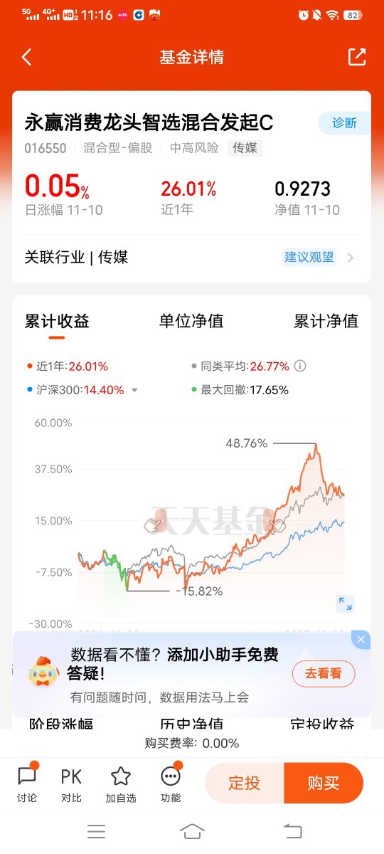 #4000点 到底要不要止盈?# 三季度游戏板块增幅显著。$永赢消费龙头智选混合发起C$ 近三月4.95%。近半年涨幅33.31%。 聚焦传媒与消费龙头。重仓股集中传媒赛道,龙头标的业绩亮眼,行业配置高度聚焦传媒,契合政策与技术创新红利,当下的市场环境,传媒板块兼具防御与进攻属性。业绩稳定性突出,超额收益能力显著。长期看传媒板块估值仍具有吸引力。