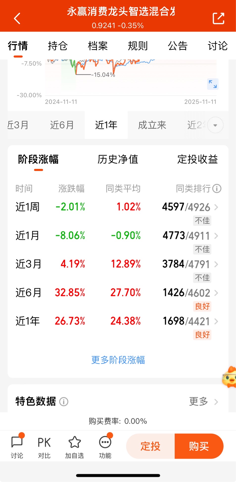 $永赢消费龙头智选混合发起C$昨天调整今天可以加仓了,近3个月收4.19%,近6