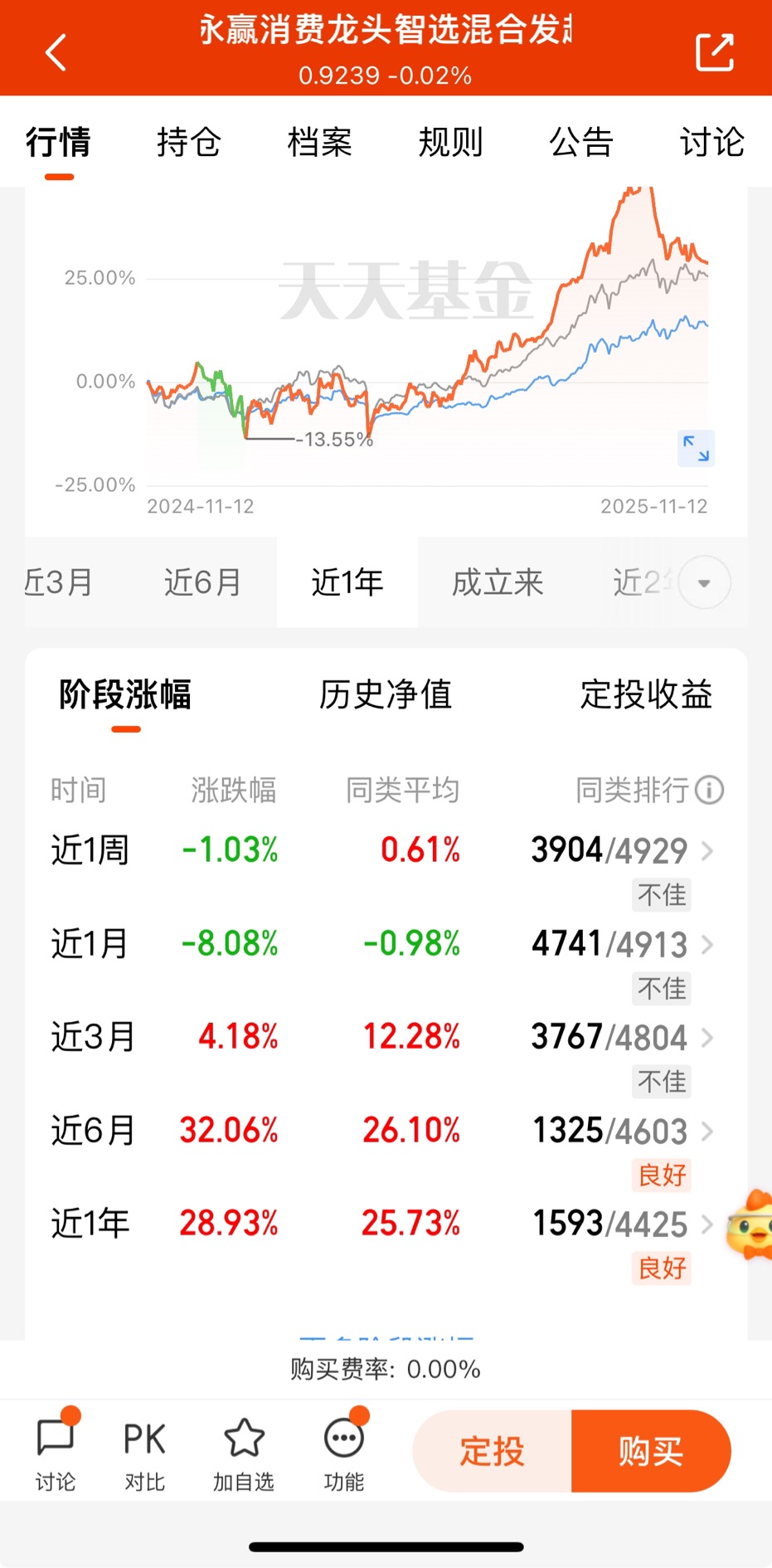 $永赢消费龙头智选混合发起C$调整的时候就配置起来吧,近3个月收4.18%,近6