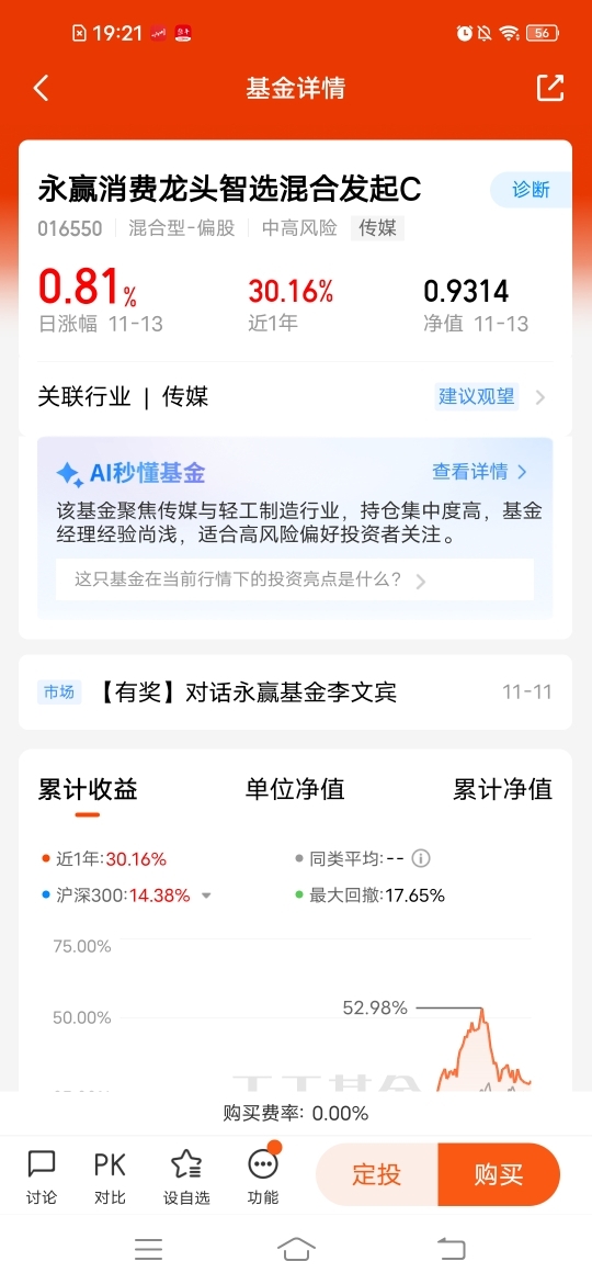$永赢消费龙头智选混合发起C$ 聚焦AI教育与传媒。今晚更新涨幅0.81%,近半年涨幅33.30%