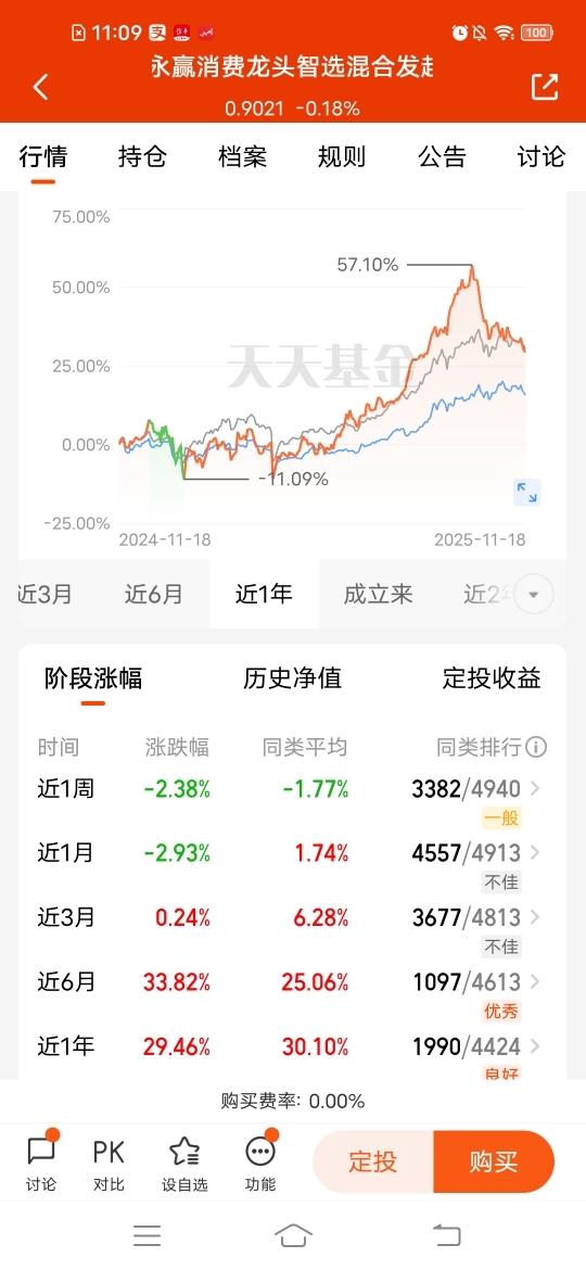 $永赢消费龙头智选混合发起C$趁着调整后布局更有动力,近六个月涨幅33.82%,