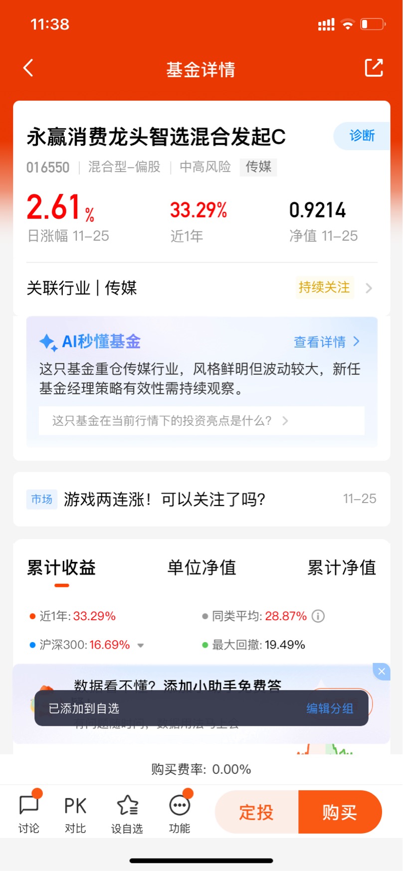 $永赢消费龙头智选混合发起C$ 昨天涨了2.61%,两天涨超4.4%,近半年36.56%涨幅,业绩弹性还是很强的!这里重仓传媒行业,重点关注游戏板块,近期互动影游《江山北望》登录steam,上线3小时斩获热门即将推出游戏榜第一名,游戏热度迅速升温,国内游戏大厂也发布将构建AI游戏全新系统,值得期待了!#3800点的A股值得加仓吗?#