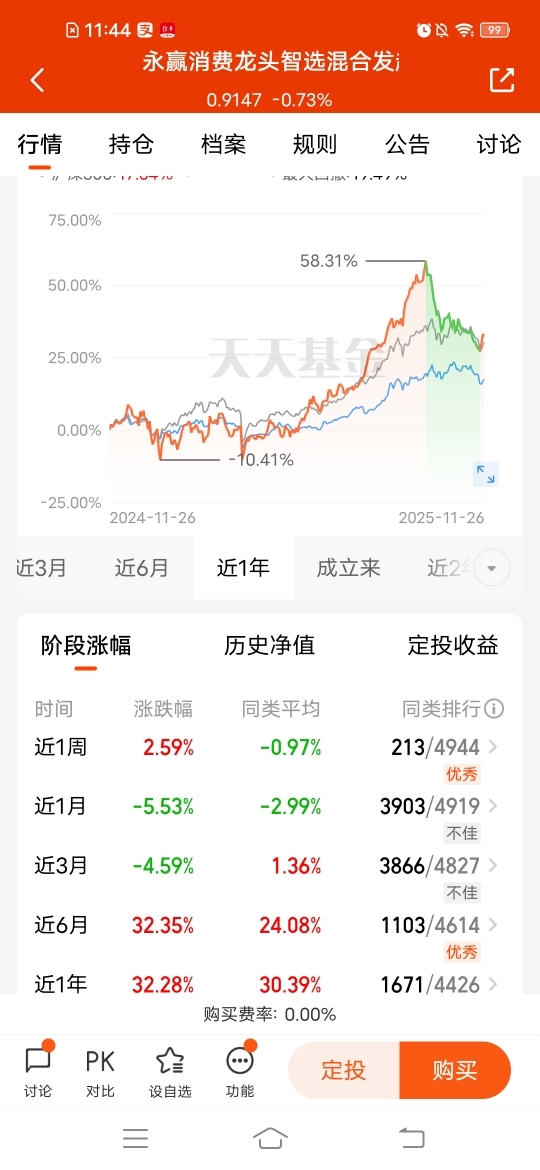 $永赢消费龙头智选混合发起C$趁着波动收集点筹码,近一周涨幅2.59%,近六个月