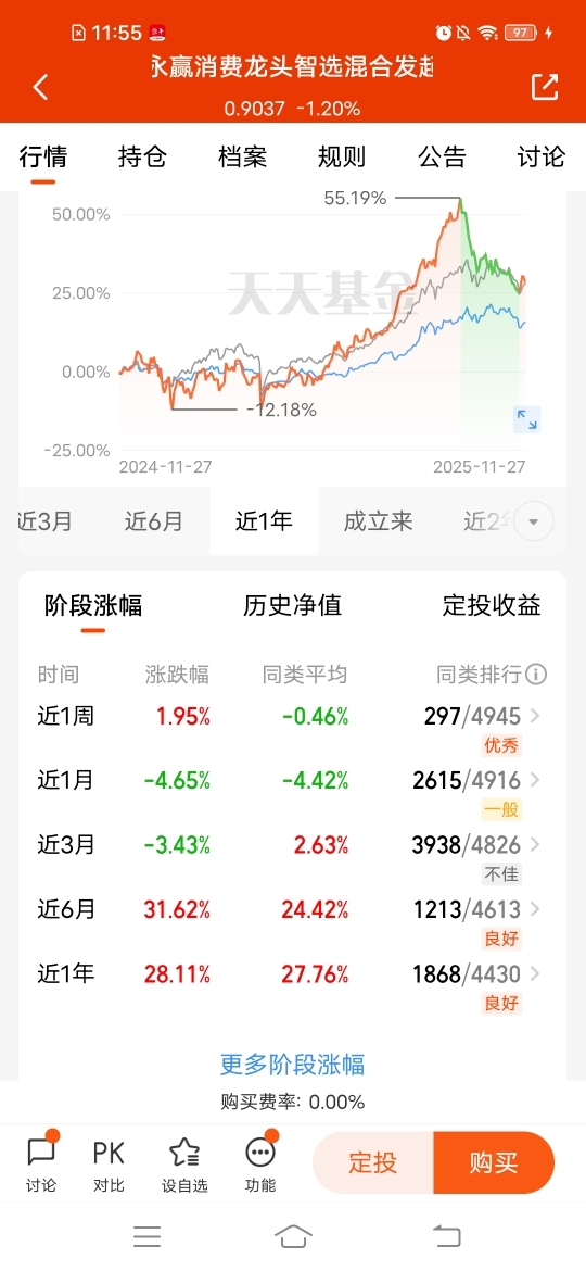 $永赢消费龙头智选混合发起C$ 现在低估值区域,布局性价比高。近一周涨幅1.95%,近六个月涨幅31.62%,近一年涨幅28.11%,却敏锐地捕捉到游戏这一新兴消费领域的投资机会。成功把握了行业增长红利。该基金主动选股策略展现出了明显优势。游戏行业优质标的,中长期更值得期待。#观点搭子团火热招募中!#