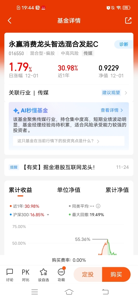 $永赢消费龙头智选混合发起C$ 聚焦AI教育与传媒。今晚更新涨幅1.79%,近半年涨幅32.40%