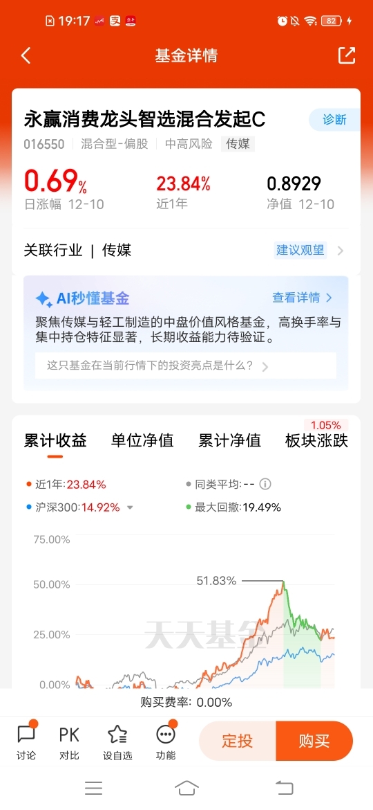 $永赢消费龙头智选混合发起C$ 聚焦AI教育与传媒。今晚更新涨幅0.69%,近半年涨幅22.00%