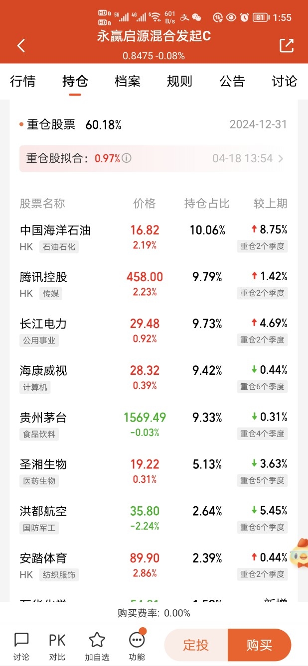 目前,从持仓情况来看,也是挺不错的,实现了逆势上升,$永赢启源混合发起C$这波也