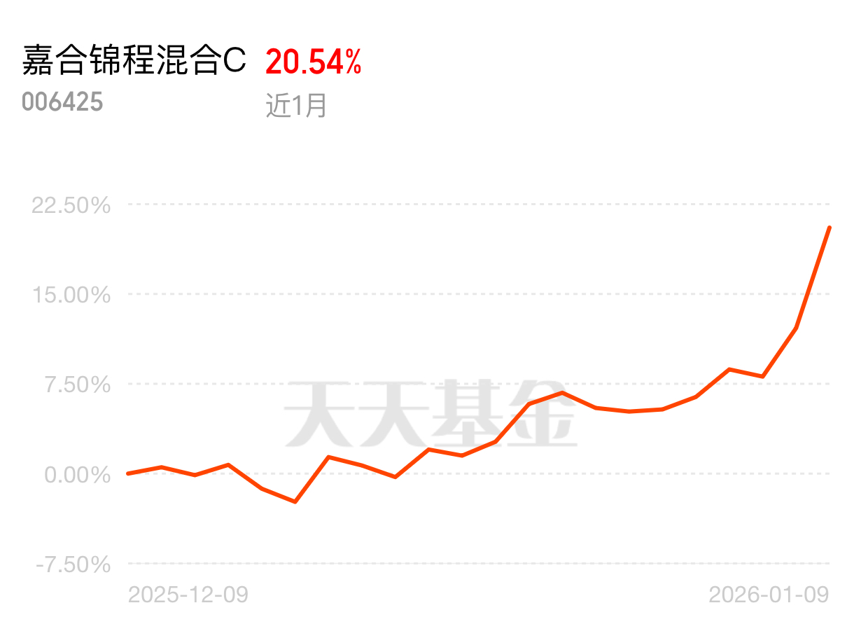商业航天行业信息透明度提升,投资者了解更充分,信心足。嘉合锦程混合 C 投高透明赛道,上周五涨 8 个点,今天估计 8 个点起步,近 1 月 20.54%,透明化高信心足。$嘉合锦程混合C$