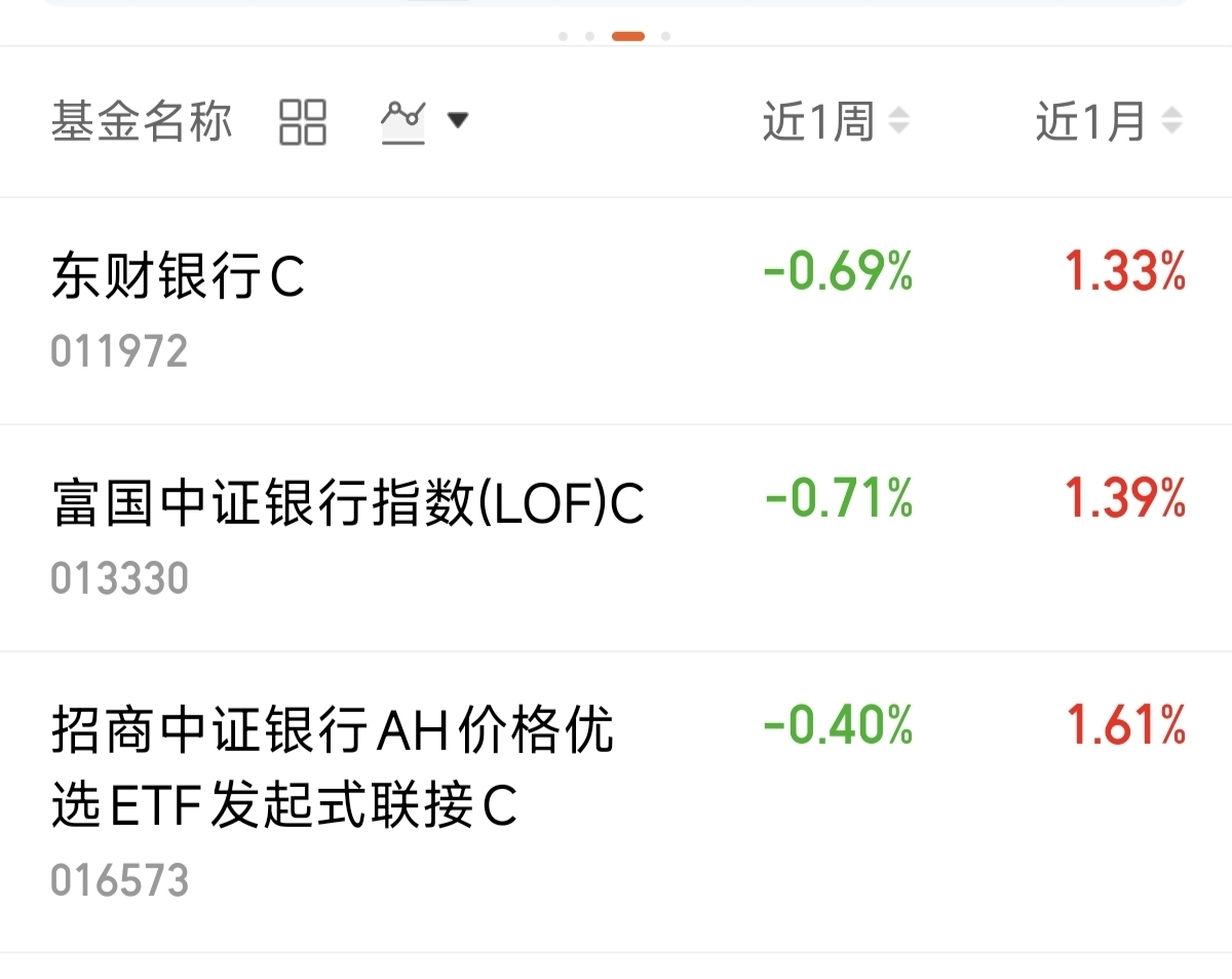 $富国中证银行指数(LOF)C$ -0.71%。