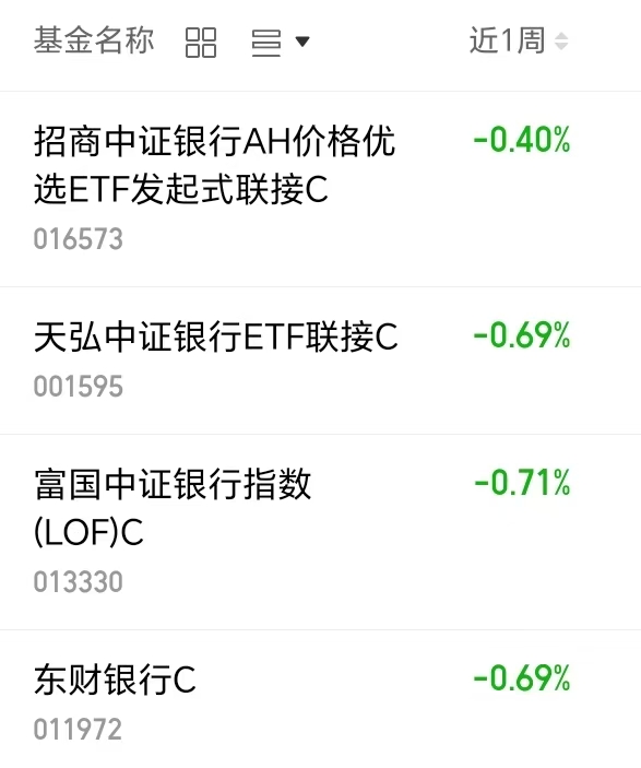 银行相关基金近一周表现!