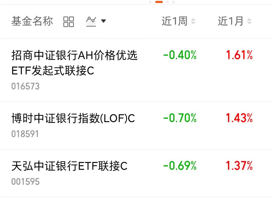 $博时中证银行指数(LOF)C(OTCFUND|018591)$近一周回调0.7%$天弘中证银行ETF联接C(OTCFUND|001595)$近一周回调0.69%