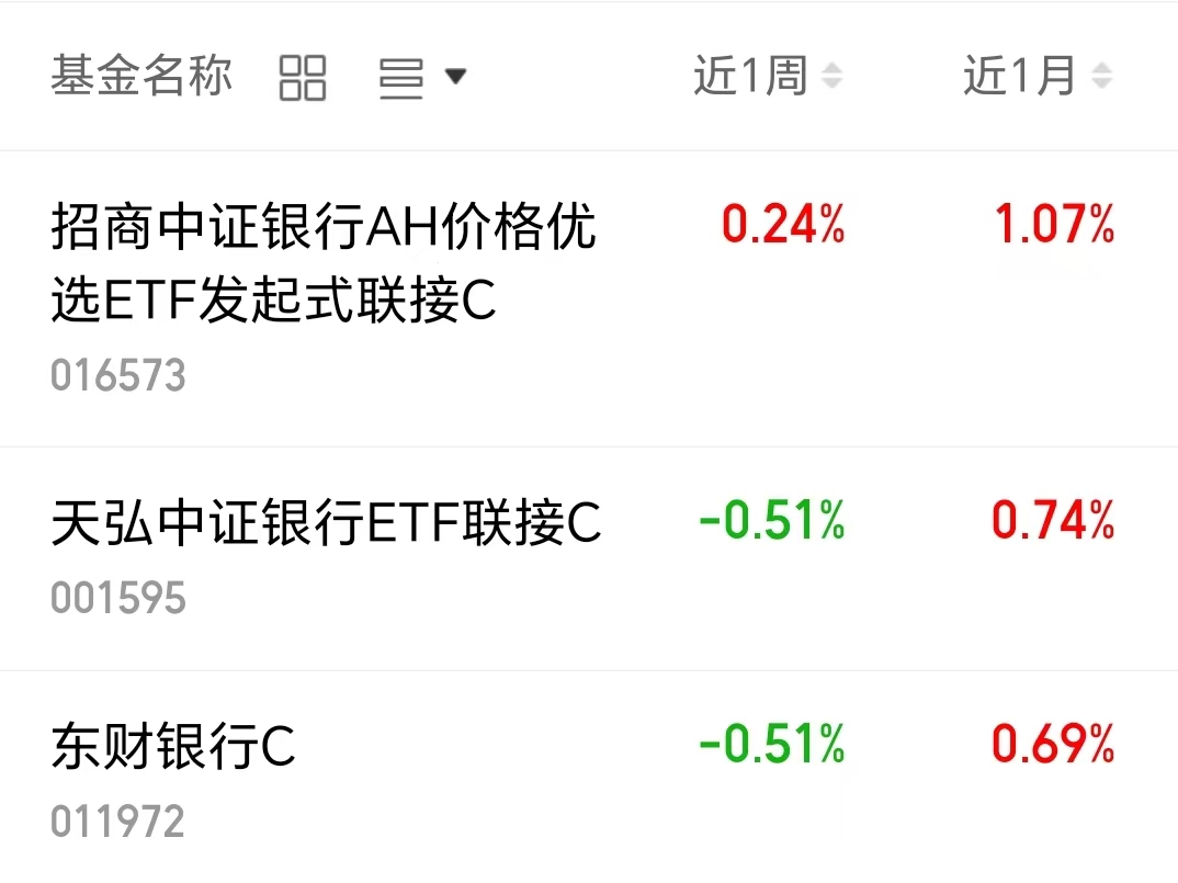 $招商中证银行AH价格优选ETF发起式联接C(OTCFUND|016573)$近一周上涨0.24%;