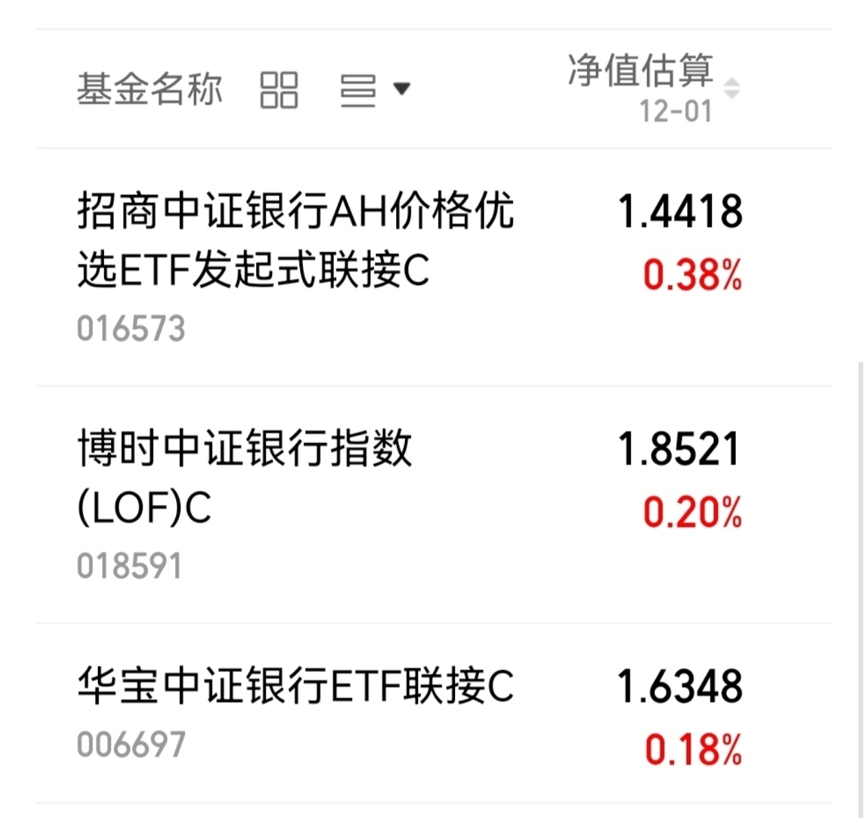 今天市场整体走势不错,银行板块作为防御性品种表现稳健。我关注的几只银行指数基金都有小幅上涨: