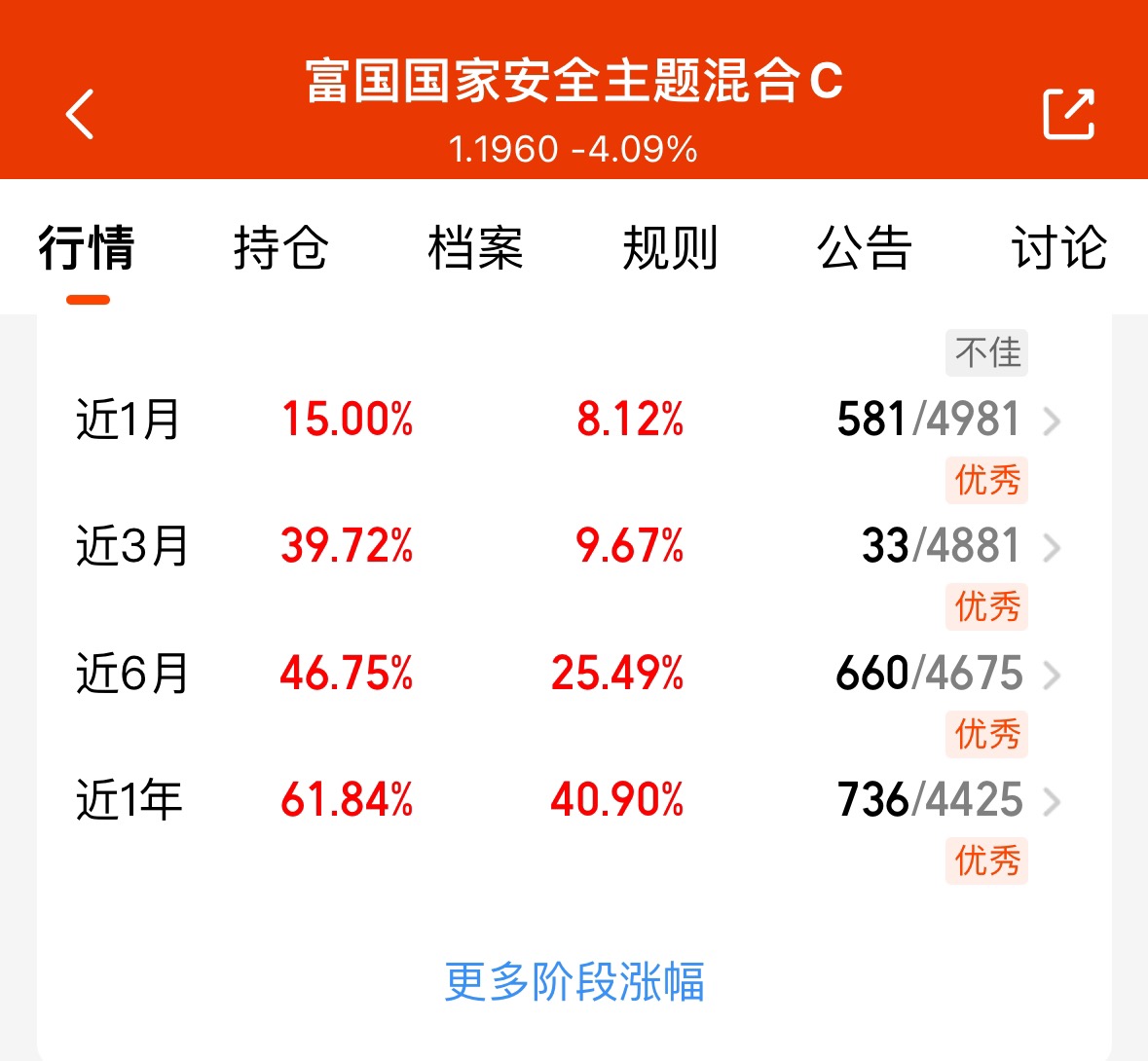 富国国家安全C太能打,今日大涨1.42%,近1年涨超61%,近6个月飙46.75