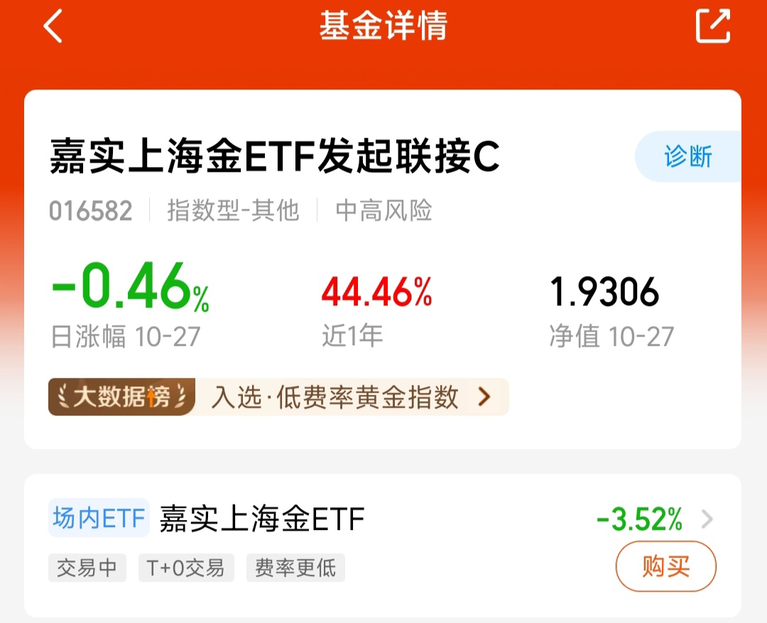 黄金的“倒车接人”机会再现?今日金价继续回调,这可能正是低位吸筹的良机。驱动黄金的长期逻辑并未改变:一方面,全球宏观经济的不确定性依然存在,黄金的避险属性不可或缺;另一方面,主要经济体央行持续的宽松预期,意味着未来全球流动性环境可能转向,这对黄金无疑是重大利好。$嘉实上海金ETF发起联接C$ 是捕捉机遇的得力工具。它不仅交易便捷,像买卖普通基金一样简单,更设有“7天免赎回费”的条款,极大地提升了资金的灵活性。趁着市场回调,继续加仓,静待金价在利好共振下重拾升势。