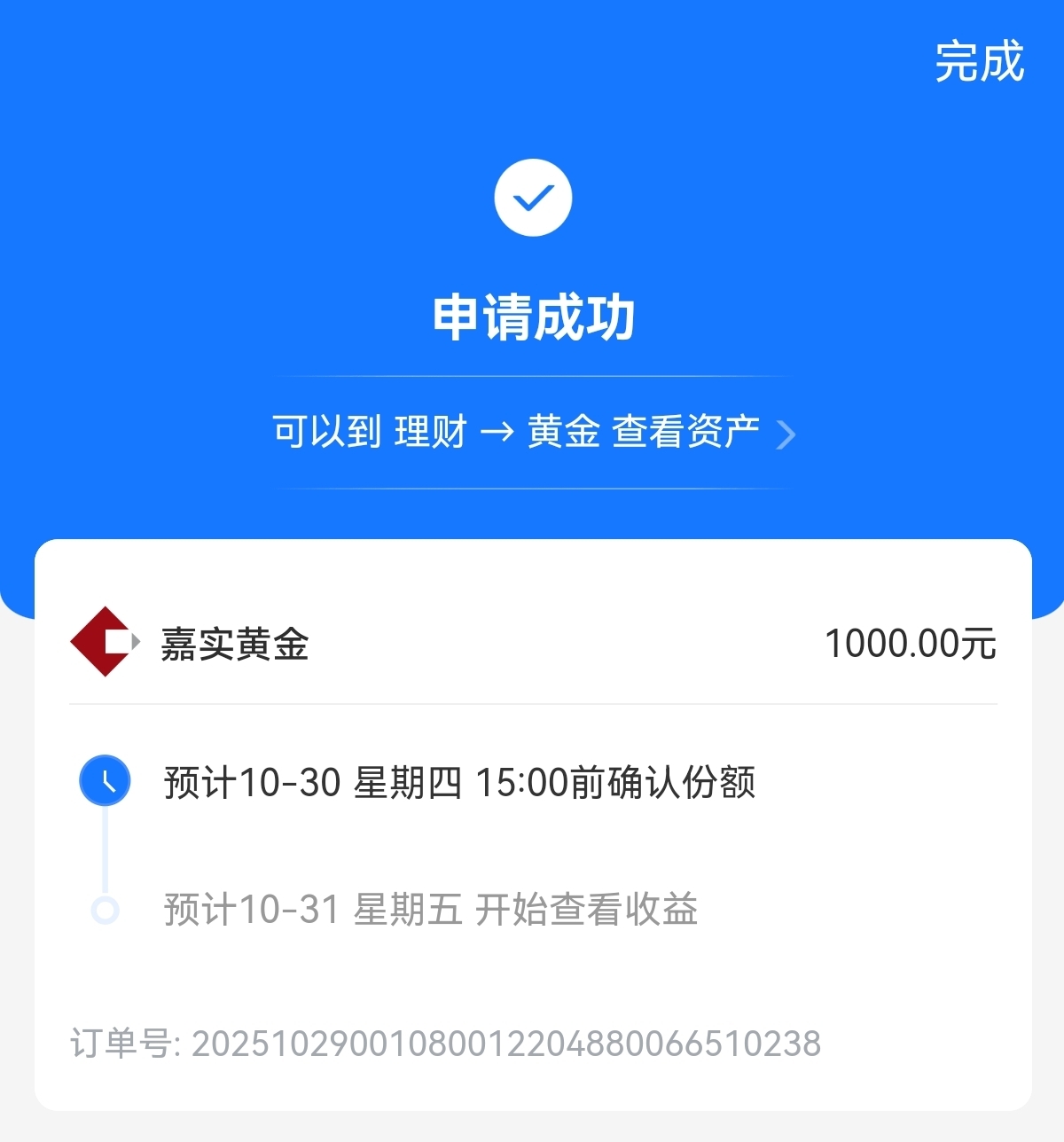 今日权益市场表现不错,黄金板块也是开始企稳了,随着前面回调恰恰释放了短期获利盘压力,黄金今年以来其价格持续攀升屡创阶段新高,调整了几天正是逢低配置的好机会。我今日加仓$嘉实上海金ETF联接C$ ,目前估值0.81%有企稳迹象。