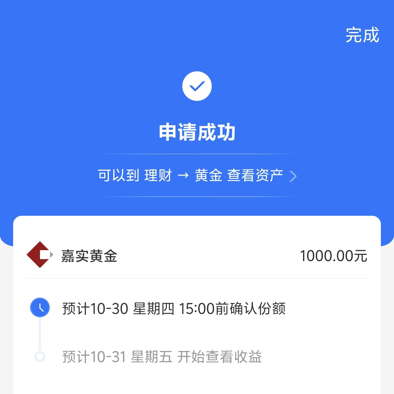 今天我也是上车了$嘉实上海金ETF发起联接C$ +1000元,目前估值上涨了0.81%,今晚稳定吃肉。基金历史业绩也非常的优秀,近一个月上涨了4.92%,近一年的收益率高达39.05%,盈利能力强,各阶段业绩在同类基金排名领先,收益率远超同类平均。随着马上召开的美联储降息会议,黄金估值会进一步的增长。叠加目前地缘风险,中东局势持续发酵,避险资金加速流向黄金。降息预期也会推动资金回流,黄金ETF持仓量持续增加。在目前避险与配置需求共振的状态下,黄金将迎来新一轮的上涨。长期持有,投资性价比高。坐等吃肉!
