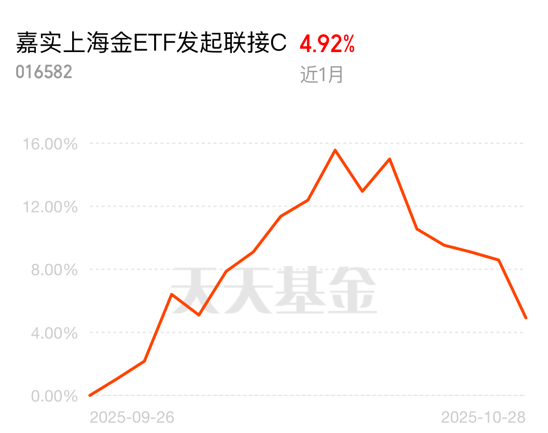 黄金这几天持续大跌,我今天趁着调整低吸一波,黄金大龙的仓位并不太多,黄金长期上涨的趋势是不变,这几天调整只是因为涨的太多了,其他没什么利空,等调整到估值合理后还是会涨的$嘉实上海金ETF发起联接C$