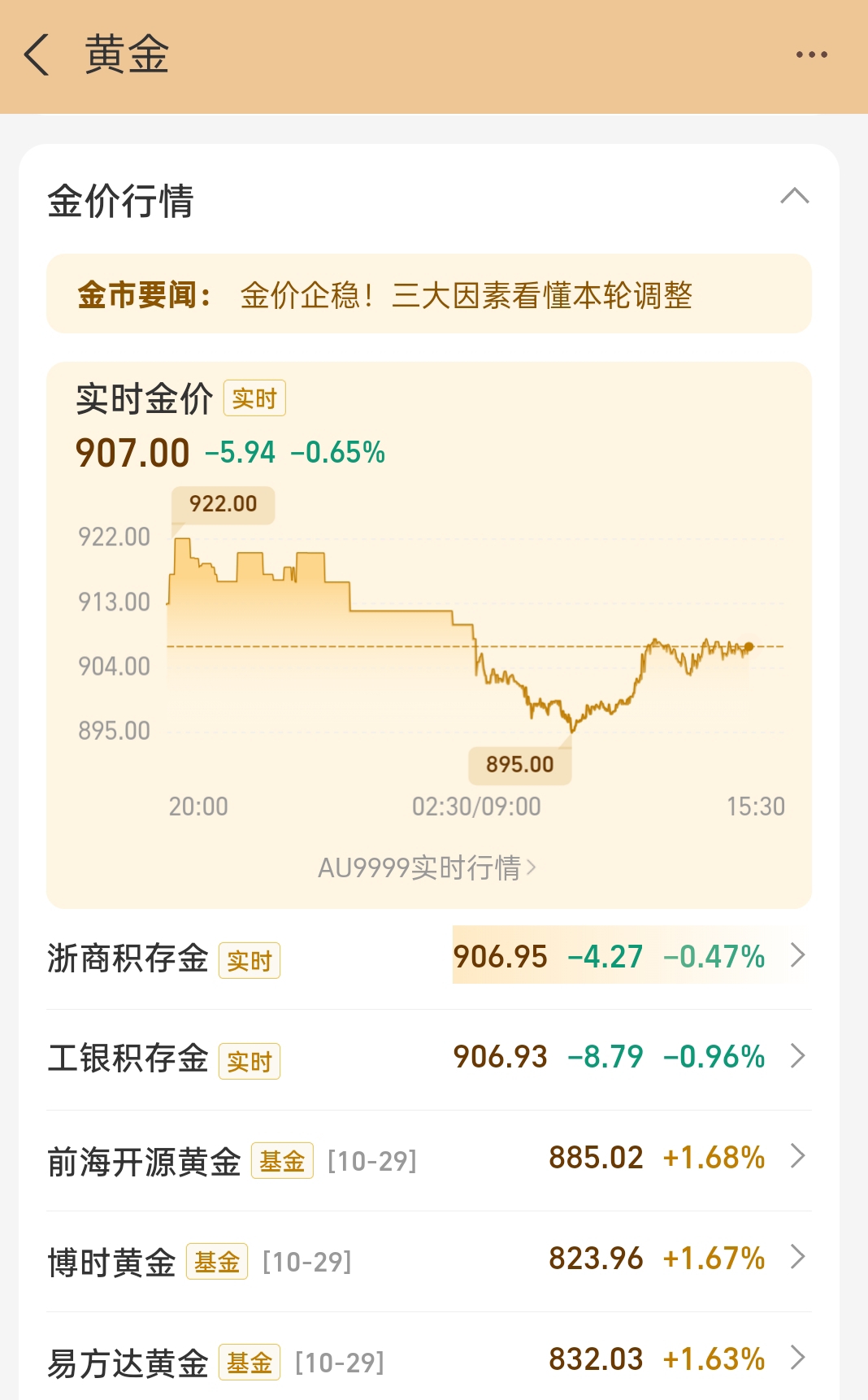 今天黄金又开始调整了,国际金价跌破3900美元,估计很多宝子都慌了,不过目前跌幅收窄,我觉得后面应该还会有行情的,对于黄金我是长期看好的,所以就算这段时间调整那么多,我还是没有回余额宝,大不了一直拿着就是了,前面加仓的$嘉实上海金ETF